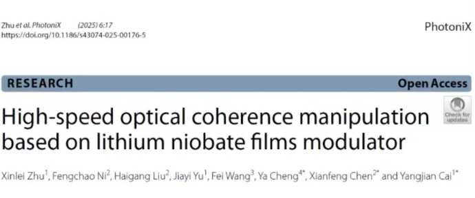 近日,乐竞(中国)一站式服务官网蔡阳健教授团队在国内著名期刊《PhotoniX》(影响因子19.1)上发表题“High-Speed Optical Coherence Manipulation Based on Lithium Niobate Films Modulator”的研究论文,创新性地将铌酸锂薄膜调制器应用于光场相干性调控,这一成果不仅为该领域研究人员提供了新型调制器件,也为铌酸锂薄膜调制器开辟了新的应用场景,展现了其在光场自由度调控中的潜力,有望在多学科交叉领域引发新一轮技术革新。